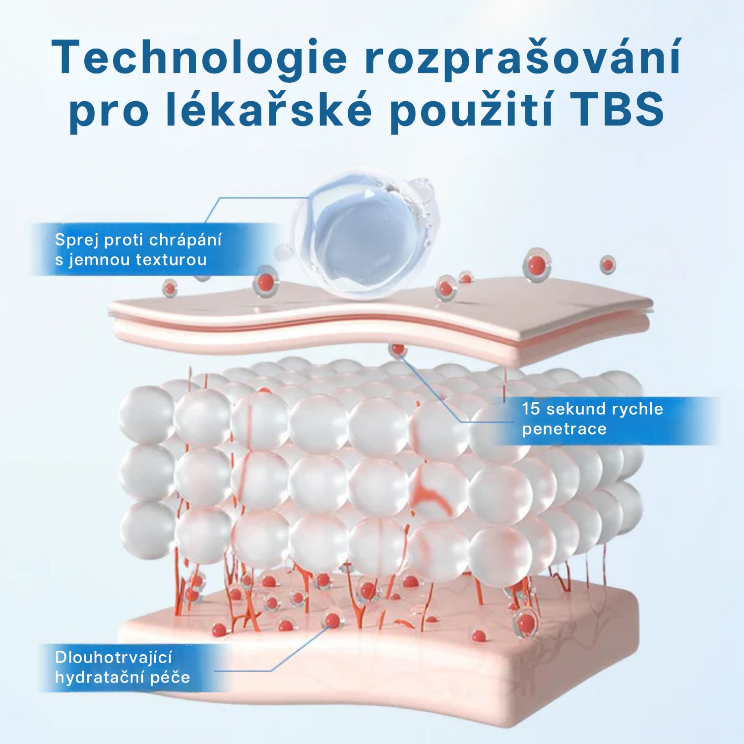 • 38násobná účinnost – Ve srovnání se standardními spreji dosahuje TBS mlha až 38krát vyšší absorpce do tkání, což vede k rychlejší a dlouhodobější redukci chrápání.