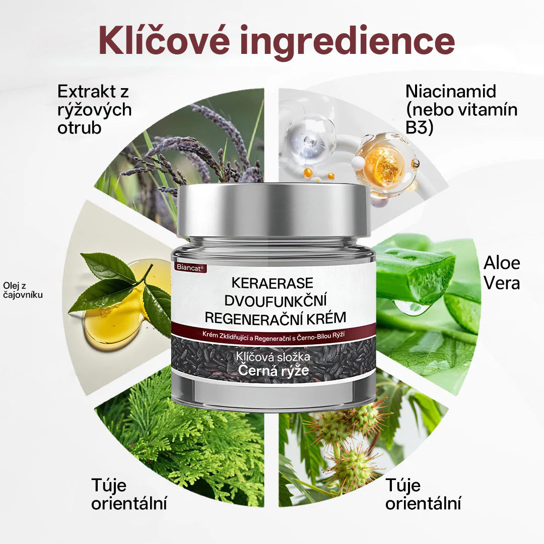 Proto jsme vytvořili Biancat® KeraErase Dual-Action Renewal Cream — jemné, rostlinné složení, které změkčuje vystouplé hrbolky, rozkládá hluboko uložené keratinové nánosy a rozjasňuje odolné tmavé skvrny — bez kyselin, bez pálení, bez olupování a bez podráždění.