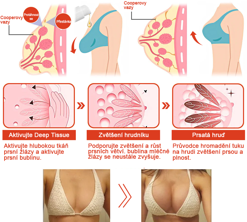 "Zhubla jsem 35 kg, a protože jsem starší, moje pleť se už nezotaví. Je tu léto a já nemůžu pořád nosit dlouhé rukávy a stydím se za své povislé paže. Řekla jsem si, že vyzkouším tyto přípravky a ukázalo se, že jsou velmi účinné. Po 4 týdnech nepřetržitého používání se povislá kůže zmenšila a paže mám vypnutější. Vřele doporučuji!”- Libuše Horáková, Ostrava ⭐⭐⭐⭐⭐