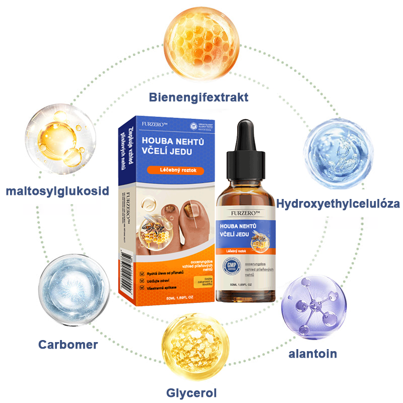 Roztok Furzero™ na léčbu plísní nehtů s obsahem včelího jedu je účinným řešením pro léčbu různých problémů s nehty. Všechny složky pocházejí z přírodních rostlin a sérum má složení s aktivním včelím jedem a přírodními výtažky. Toto sérum proniká hluboko do nehtů a nehtové kůžičky, odstraňuje úporné plísně, zlepšuje zdraví nehtů a podporuje jejich rychlý růst. Jeho silné antibakteriální a protiplísňové vlastnosti účinně zabraňují infekcím a posilují nehty, takže jsou odolnější. Snadno použitelný a vysoce účinný přípravek Furzero™ představuje bezpečnou, přírodní a neinvazivní metodu obnovy zdravých a krásných nehtů.