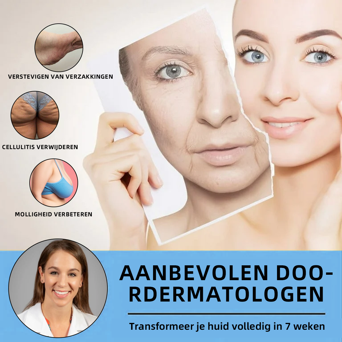 Proces stárnutí se v těle projevuje přirozeným způsobem, který obvykle začíná kolem 25. roku života.Na tomto jevu se podílí pokles produkce kolagenu, který je nezbytný pro udržení struktury kůže, a snížená elasticita nebo rozpad elastinu, který podporuje odolnost kůže.Tyto změny jsou často patrnější u žen. Kromě toho může dojít ke zpoždění odbourávání odumřelých kožních buněk a mírnému snížení tvorby nových kožních buněk, což může vést k ochabování a tvorbě vrásek v různých částech kožní tkáně těla.
