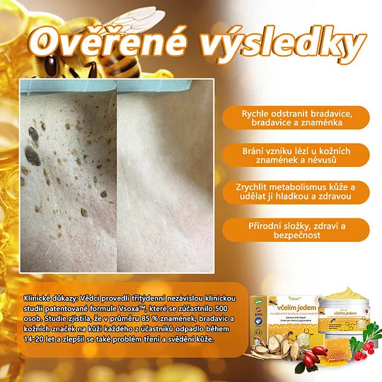 𝐕o𝐬𝐨𝐱𝐚™ 𝐕č𝐞𝐥í𝐦 𝐉𝐞𝐝𝐞𝐦 𝐍𝐚 𝐎𝐝𝐬𝐭𝐫𝐚𝐧ě𝐧í 𝐁𝐫𝐚𝐝𝐚𝐯𝐢𝐜 𝐀 𝐙𝐧𝐚𝐦é𝐧𝐞𝐤 𝐊𝐫é𝐦 nabízí komplexní řešení pro různé kožní problémy. Tento inovativní Krém, který využívá silné vlastnosti včelího jedu, účinně odstraňuje kožní skvrny a bradavice a zároveň stimuluje regeneraci tkání a urychluje proces hojení. Jeho antivirová aktivita pomáhá předcházet infekcím po odstranění a zajišťuje bezpečnost pro všechny typy pleti.