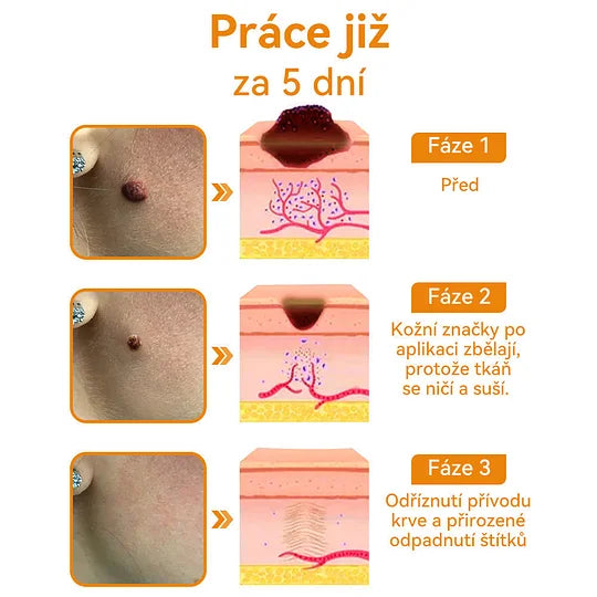 ✔ Odstraňuje kožní štítky, bradavice a mateřská znaménka